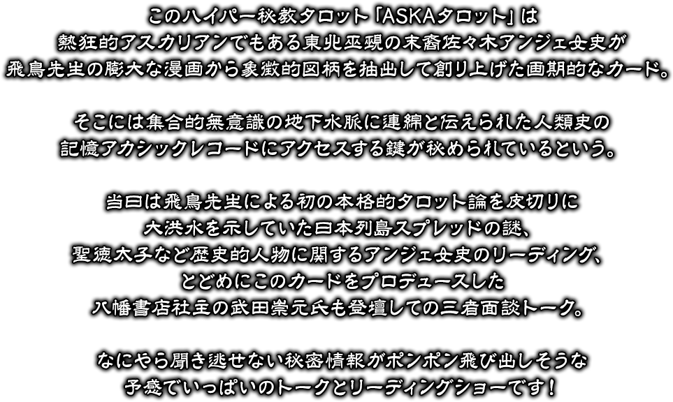 | ●第二部 | 15:15〜16:15 ・「ASKAタロット」の説明、解説 |
